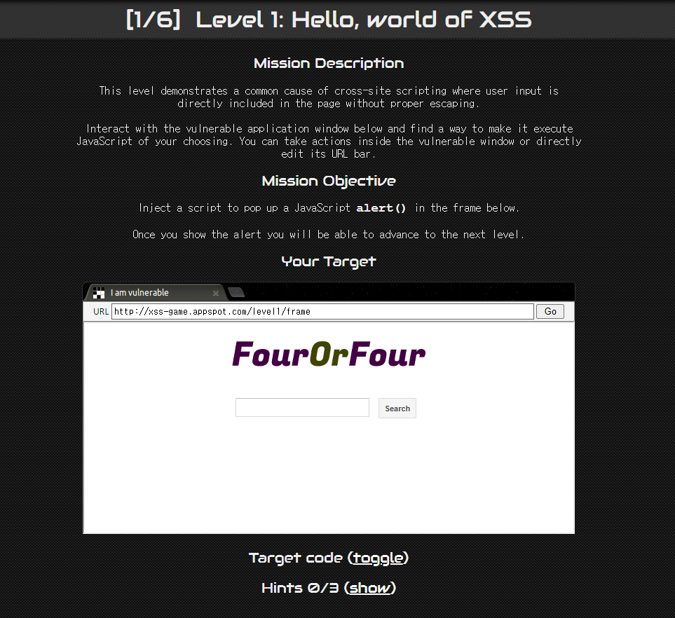 XSS 실습하기 위하여 XSS-game이란 사이트에서 문제를 풀어보았다.